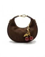 Tasarımın en çarpıcı noktası, altın rengi yaprak detaylarıyla tamamlanan ışıltılı kırmızı kiraz (cherry) charm aksesuarıdır. Bu eğlenceli detay, çantanın klasik duruşuna modern ve enerjik bir ruh kazandırır. Altın rengi fermuar ve metal halka aksamlar, kahverenginin derinliğiyle mükemmel bir kontrast oluşturur. Kompakt boyutuna rağmen telefon ve cüzdan gibi temel ihtiyaçlarınız için ideal bir alan sunan Braun Cherry, özellikle toprak tonları ve denim kombinlerinin vazgeçilmezi olacak.