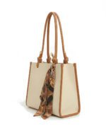 Bu modelin imzası, sapların bağlantı noktasındaki estetik düğüm detaylarına eklenen şık fular (eşarp) dokunuşudur. Kahve ve toprak tonlarındaki desenli eşarp, çantanın sakin duruşuna lüks ve dinamik bir hava katar. Dikdörtgen ve kalıplı formu sayesinde duruşunu bozmayan Scarf Beige, geniş iç hacmiyle hem ofis şıklığına hem de hafta sonu kombinlerine mükemmel uyum sağlar.
